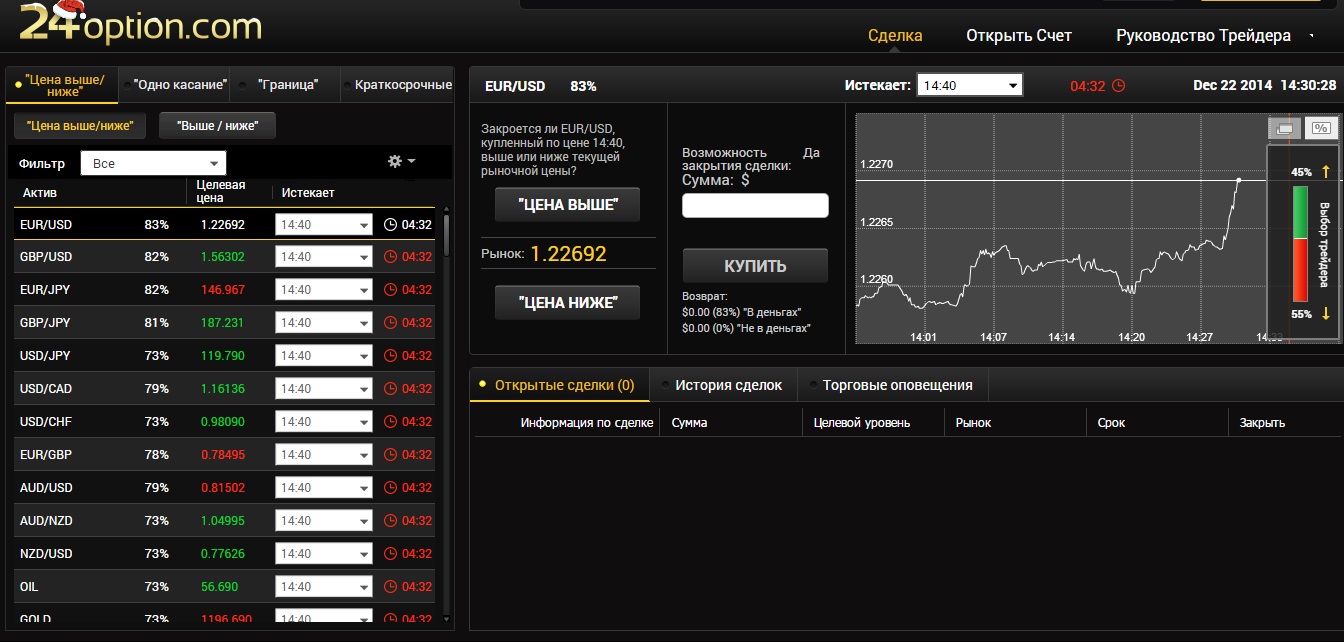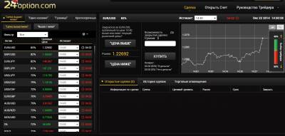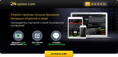 В этой статье будет представлена подробная информация о брокере—который является несомненным лидером в секторе бинарных опционов уже на протяжении нескольких лет. 24Option — крупнейший на данный момент брокер бинарных опционов, созданный компанией Cbay Financial Services Limited в 2010 году . С декабря 2013-го у платформы появился новый владелец — Rodeler Limited. 24Option имеет офисы на Кипре и в Лондоне. Обслуживание клиента на 24Option на самом деле носит всеобъемлющий характер, оправдывая название "24", - обслуживание 24 часа в сутки. Помимо телефонной связи работают е-мейлы и чат,на которые отвечают всегда. И, разумеется, к каждому клиенту-трейдеру прикрепляется персональный менеджер, готовый оперативно решать возникающие вопросы. Основными приоритетами крупнейшего в мире брокера 24option является безопасность и прозрачность всех проводимых торговых операций. Деятельность компании регулируется кипрской комиссией «CySec», осуществляющей контроль над акциями и биржами. Также кроме лицензии CySEC, брокер обладает также рядом других европейских лицензий, среди которых FCA (Великобритания), а также BaFIN (Германия), регуляторы, известные своим жестким подходом к надзорным функциям. Помимо этого по версии «Forexmagnates» компания была номинирована: «Лучший брокер в торговле по бинарным опционам 2013 года». Платформа 24option устроена таким образом, что торговля опционами происходит быстро, удобно и качественно. О торговой платформе компании 24option можно говорить очень долго. Ведь этот брокер бинарных опционов первый, кто предложил торговую платформу«TechFinancials», обладающую расширенными возможностями. Отличительная особенность данной торговой платформы, это возможность масштабирования графиков и сохранения практически месячной истории котировок, а это как вы понимаете очень важно для решения среднесрочных и краткосрочных задач. Касательно вывода средств, то у данного брокера он является достаточно стандартной процедурой. Трейдеру необходимо направить 24option.com заявку на выведение средств со счета и брокер переведет указанную сумму на платежную систему (Qiwi, Webmoney, Skrill и др.) либо на счет в банке. Есть возможность осуществлять прямые переводы на банковские карты MasterCard и VISA. При этом необходимо запомнить, что при самом первом переводе денег, вам необходимо будет верифицироваться. Другими словами брокер может запросить у вас отсканированные копии некоторых документов, например, паспорта или водительского удостоверения. Все это делается в Ваших интересах, чтобы компания могла точно знать, что вывод денег был заказан именно Вами. Обзор базовых активов у брокера 24optionЗатрагивая базовые активы, следует что брокер 24option предлагает трейдерам самый широкий выбор, куда входят не только самые основные мажоры, но также и акции известных мировых компаний, кроссы, сырьевые товары, а также фондовые индексы. Несомненно, такой широкий выбор торговых активов дают трейдерам возможность вести более утонченные торги, используя фундаментальный анализ и хеджируя риски. У брокера бинарных опционов представлены следующие виды контрактов: