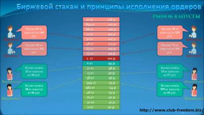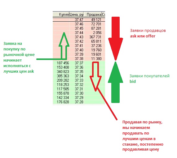 Ниже на картинке приведен принцип действия биржевого стакана на доступном примере
